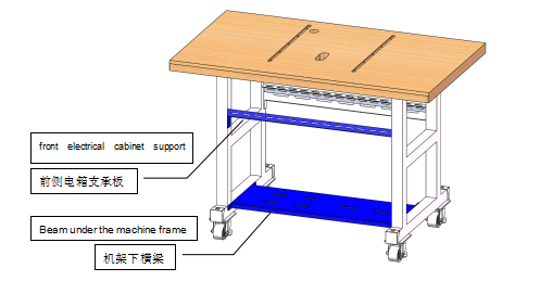 1、為了便于裝箱運輸,機器拆分為如下圖擺放,由于木臺板正面位于下方,請注意開箱后的搬動,不能刮花臺面