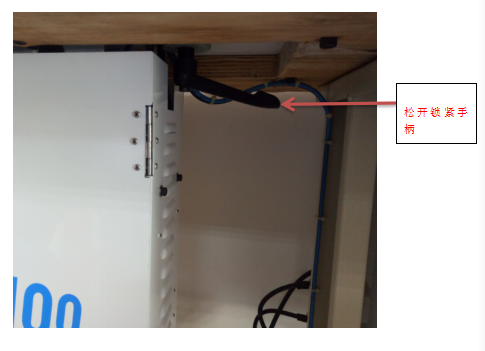 1、松開機臺底面的鎖緊手柄
