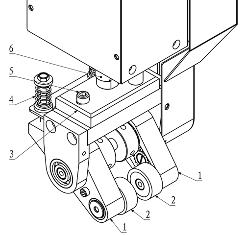 2.調較壓縮彈簧4力度,可以調節帶動輪2對布料壓緊力度。