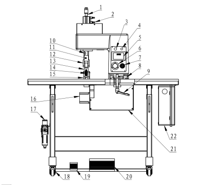 19.氣動(dòng)腳踏閥:控制焊頭升降氣缸之上下,往后踏氣缸向上,往前踏氣缸向下。